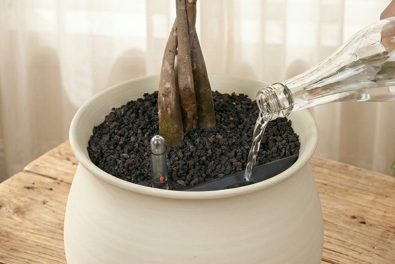 Our ceramic planters use a concealed reservoir system that keeps roots perfectly hydrated. A clean water-level indicator shows exactly when to refill.