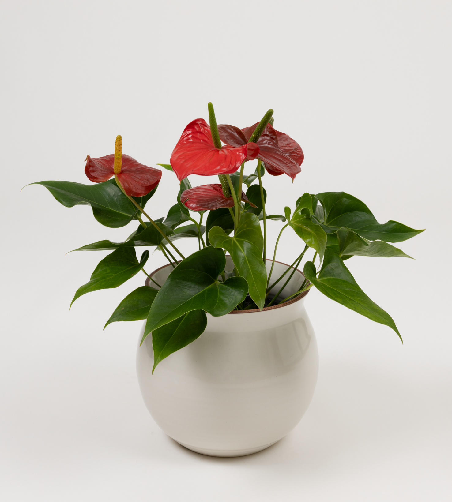 Native to the rainforests of Colombia and Ecuador, the Anthurium andraeanum thrives in warm, humid, shaded environments under the jungle canopy. Its vibrant spathes and glossy foliage made it a standout species among the hundreds of Anthurium varieties found across the Americas. Introduced into cultivation in the 19th century, the Flamingo Flower quickly became one of the most popular tropical houseplants worldwide. Its association with hospitality, abundance, and love has also given it symbolic importance, making it a frequent gift and decorative favorite. Today, Anthurium andraeanum remains a luxury indoor plant, combining exotic beauty with year-round flowering potential, and is prized by plant enthusiasts and designers alike.