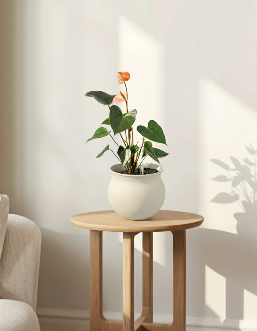 Your Anthurium ‘Pink’ comes pre-potted in a modern self-watering planter, which provides consistent hydration and keeps care simple. This system ensures lush foliage and longer-lasting blooms while reducing the risk of over- or under-watering.