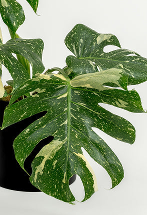 Do you want a plant that you can show off? This rare variegated Swiss Cheese plant is like an abstract painting, each leaf splashed with mint-green variegation. Compact and sculptural, it invites double takes on shelves or desks.