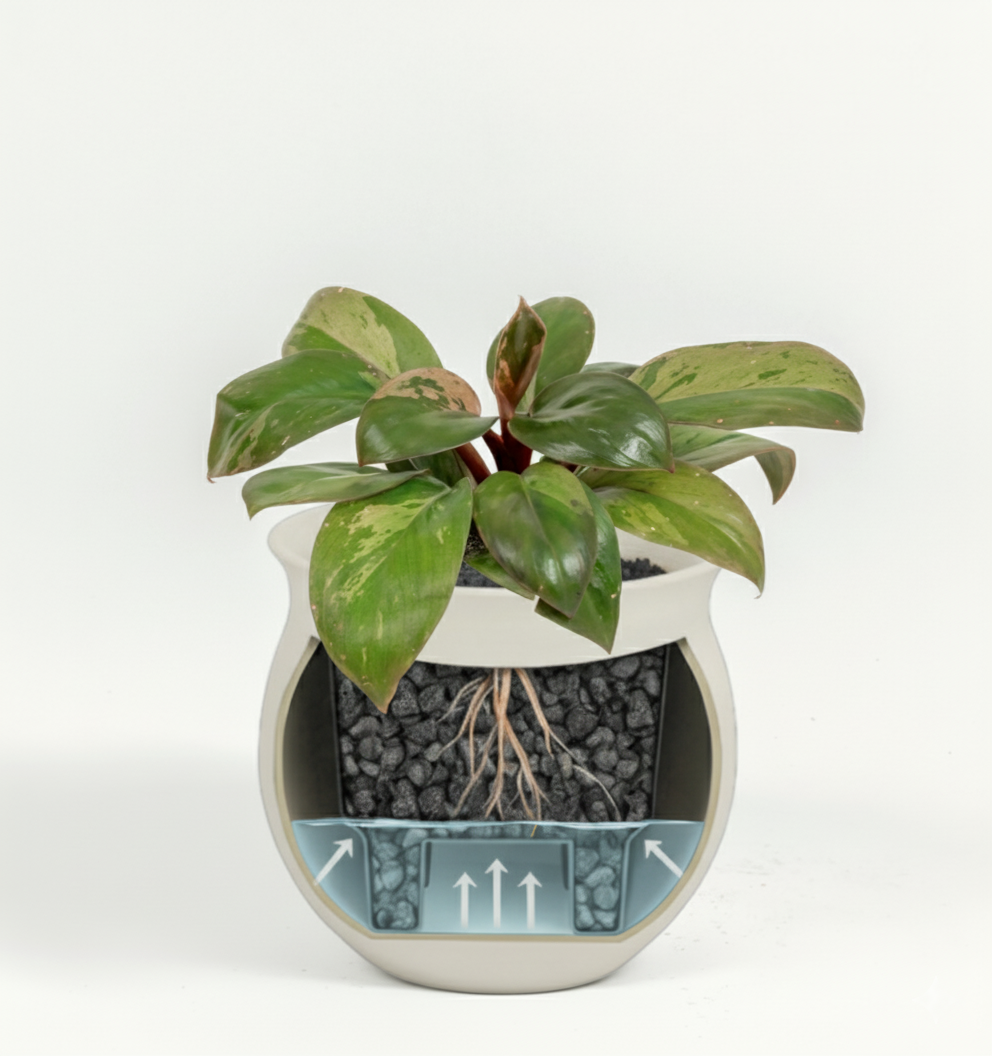 Self-Watering Philodendron hybrid 'Dwarf Red Congo'