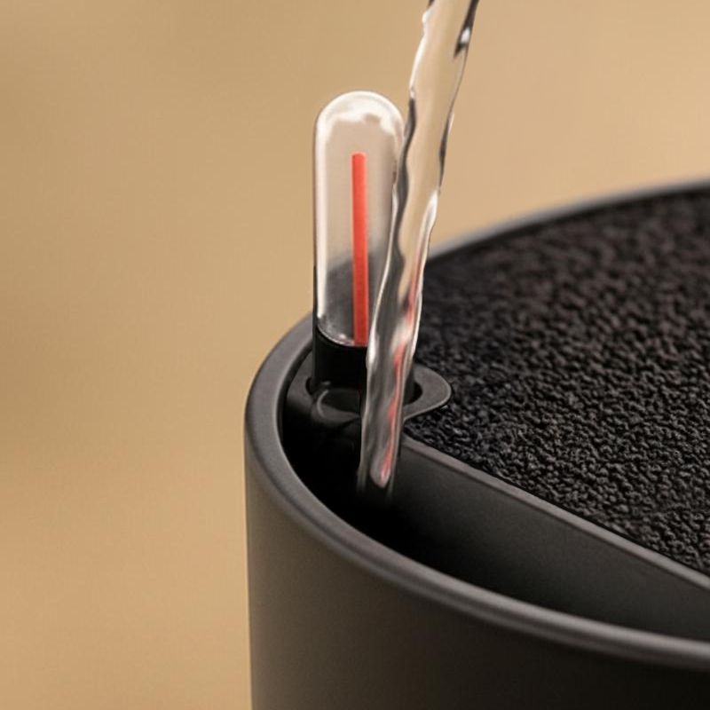 Simply top off the hidden reservoir every 2–4 weeks. We’ll guide you based on your plant’s species and environment.
